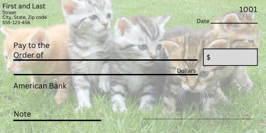 This example below is very generic and includes almost everything you will see on a check. At the top right corner you will see a number which is the “check number”. This will help you keep track of which check you wrote to whom.